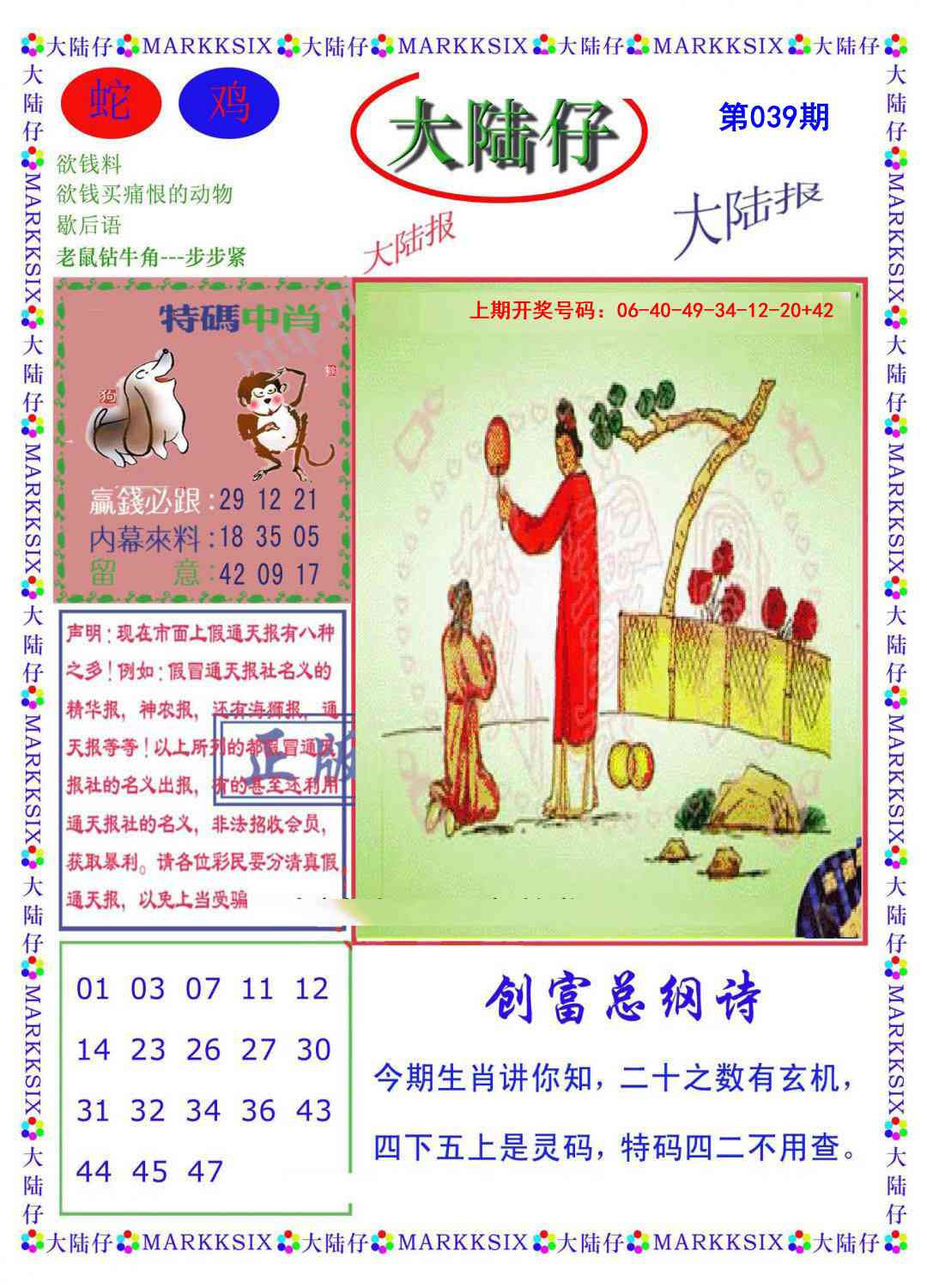 038期⑥肖【猴狗羊鸡鼠龙】开 42 准